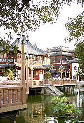 Yuyuan Garden's Huxin Ting teahouse is very popular and numerous stalls sell delicious Chinese snacks and desserts.