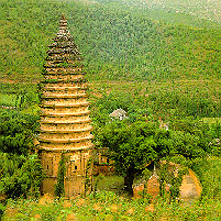 Songyue Temple Pagoda is found 5km (3miles) northwest of Dengfeng, on the southwest foot of Mount Taishi. The pagoda was built in 520AD, and is the oldest Buddhist pagoda in China. The 45 meter (148ft) high pagoda is unique because it is a 12 sided structure.