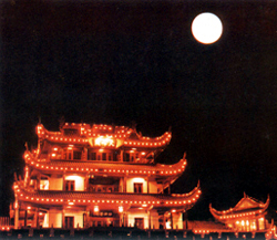 The 3 story tower is 18 meters (59ft) high and is supported by 60 wood columns. The top of the tower is decorated with 32 rising turtles and 32 bronze bells adorned with horses and dragons.