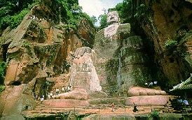 into the cliff side of Lingyun Mountain. The Buddha is over 71 meters