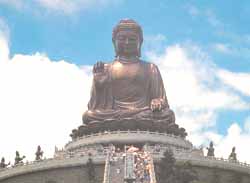 The highlight of Po Lin Monastery however, is the Tian Tan Buddha, otherwise known as the Giant Buddha, who is seated on the hilltop, up a flight of 268 steps. The 34 meter (112ft), 250 ton sculpture is the world's largest seated outdoor bronze statue of the Buddha. The statue was opened to the public in December 1993 after 10 years of construction. The views of the surrounding countryside from the base of the statue are simply stunning and there are also small exhibition galleries for view inside the statue.