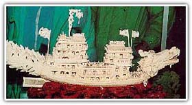 Up to the time of writing, the most complicated "latticed balls within balls" has been produced by the Daxin Ivory Factory of Guangzhou. In 1997, Weng Rong Liao a veteran master craftsman cut out of an ivory block 15 cm across, a set of 42 latticed balls-one inside another, each ball movable inside its larger sphere and bearing pierced work of landscapes (pavilions and towers, clouds and mountains ). And the innermost ball is as thin as paper!